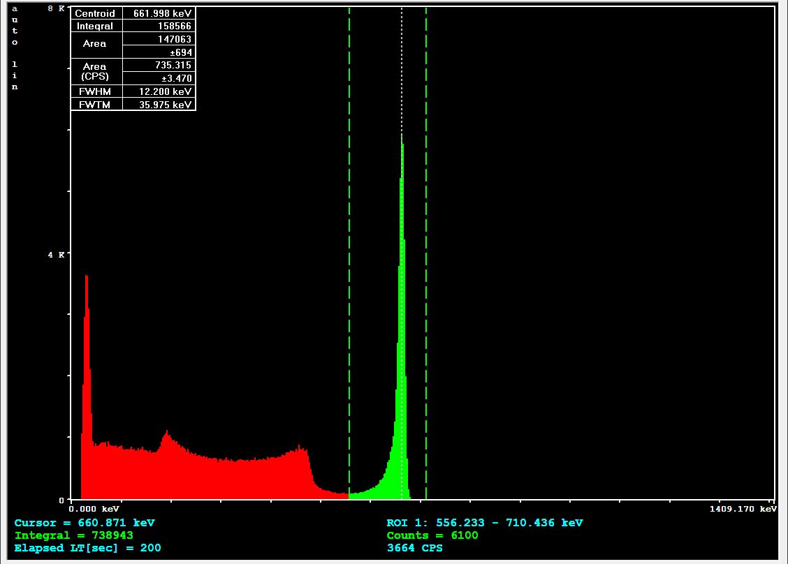 The charge sensitive preamplifier with FET input and resistive feedback convert the charge carriers developed in the CZT detector during each absorbed nuclear event to a step function voltage pulse, the amplitude of which is proportional to the total charge accumulated in that event.